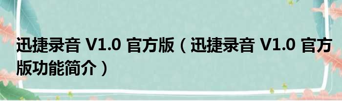 迅捷录音 V1.0 官方版(迅捷录音 V1.0 官方版功能简介)