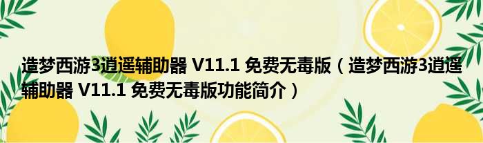造梦西游3逍遥辅助器 V11.1 免费无毒版(造梦西游3逍遥辅助器 V11.1 免费无毒版功能简介)