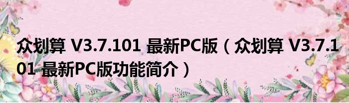 众划算 V3.7.101 最新PC版(众划算 V3.7.101 最新PC版功能简介)