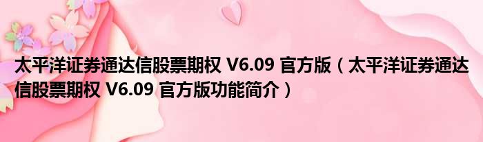 导读 大家好,关于太平洋证券通达信股票期权 V6 09 官方版,太平洋证券通达信股票期权 V6 09 官方版功能简介这个很多人还不知道,小勒来为大家