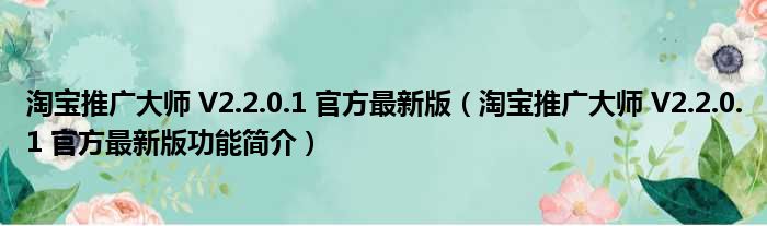 淘宝推广大师 V2.2.0.1 官方最新版(淘宝推广大师 V2.2.0.1 官方最新版功能简介)
