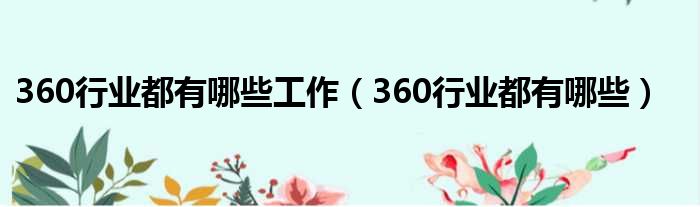 导读 大家好,今天小六子来为大家解答以下的问题,关于360行业都有哪些工作,360行业都有哪些这个很多人还不知道,现在让我们一起来看看吧!1、所