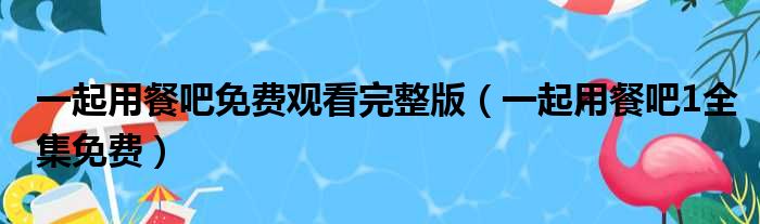 导读 大家好,今天小六子来为大家解答以下的问题,关于一起用餐吧免费观看完整版,一起用餐吧1全集免费这个很多人还不知道,现在让我们一起来看看