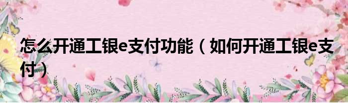 导读 大家好,今天小六子来为大家解答以下的问题,关于怎么开通工银e支付功能,如何开通工银e支付这个很多人还不知道,现在让我们一起来看看吧!1
