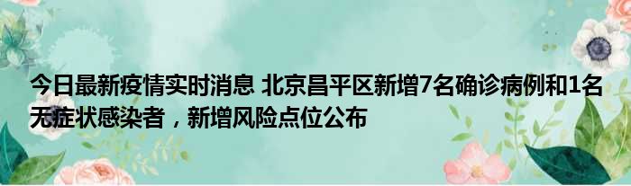 今日最新疫情实时消息 北京昌平区新增7名确诊病例和1名无症状感染者,新增风险点位公布