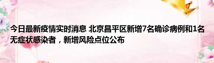 今日最新疫情实时消息 北京昌平区新增7名确诊病例和1名无症状感染者,新增风险点位公布