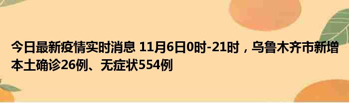 今日最新疫情实时消息 11月6日0时-21时,乌鲁木齐市新增本土确诊26例、无症状554例