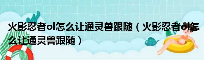 火影忍者ol怎么让通灵兽跟随(火影忍者ol怎么让通灵兽跟随)