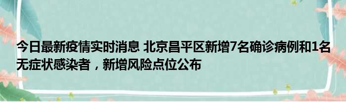 今日最新疫情实时消息 北京昌平区新增7名确诊病例和1名无症状感染者,新增风险点位公布