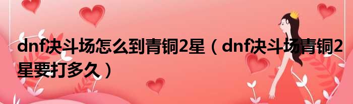 导读 大家好,今天小六子来为大家解答以下的问题,关于dnf决斗场怎么到青铜2星,dnf决斗场青铜2星要打多久这个很多人还不知道,现在让我们一起来