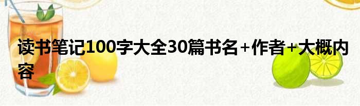 大家好,今天小六子来为大家解答以下的问题,关于读书笔记100字大全30篇书名+作者+大概内容这个很多人还不知道,现在让我们一起来看看吧!