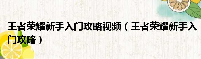 导读 大家好,今天小六子来为大家解答以下的问题,关于王者荣耀新手入门攻略视频,王者荣耀新手入门攻略这个很多人还不知道,现在让我们一起来看
