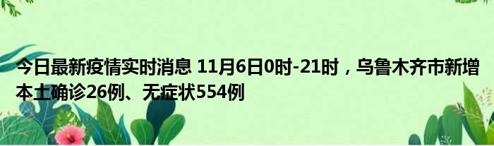 今日最新疫情实时消息 11月6日0时-21时,乌鲁木齐市新增本土确诊26例、无症状554例