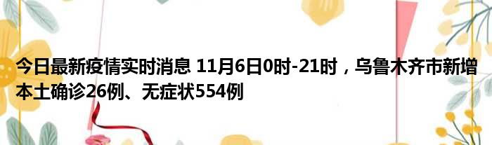 今日最新疫情实时消息 11月6日0时-21时,乌鲁木齐市新增本土确诊26例、无症状554例