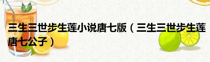 导读 大家好,今天小六子来为大家解答以下的问题,关于三生三世步生莲小说唐七版,三生三世步生莲唐七公子这个很多人还不知道,现在让我们一起来
