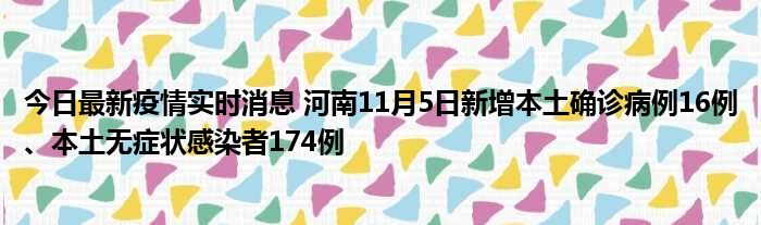 今日最新疫情实时消息 河南11月5日新增本土确诊病例16例、本土无症状感染者174例