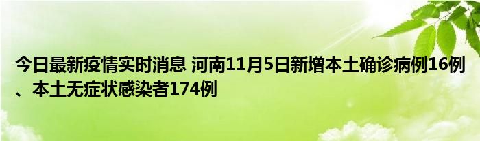 今日最新疫情实时消息 河南11月5日新增本土确诊病例16例、本土无症状感染者174例