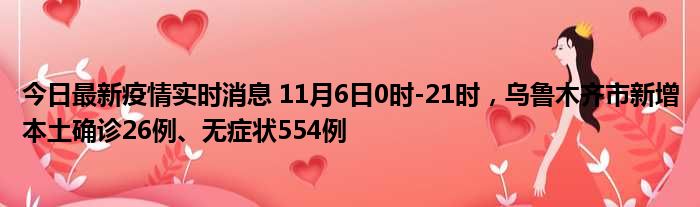 今日最新疫情实时消息 11月6日0时-21时,乌鲁木齐市新增本土确诊26例、无症状554例