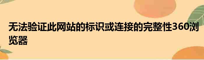 导读 大家好,今天小六子来为大家解答以下的问题,关于无法验证此网站的标识或连接的完整性360浏览器这个很多人还不知道,现在让我们一起来看看吧