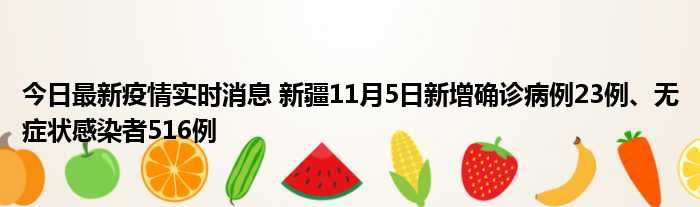 据新疆卫健委通报,11月5日0时至24时,新疆维吾尔自治区新增确诊病例23例,新增无症状感染者516例,新增确诊病例治愈出院7例,新增无症状