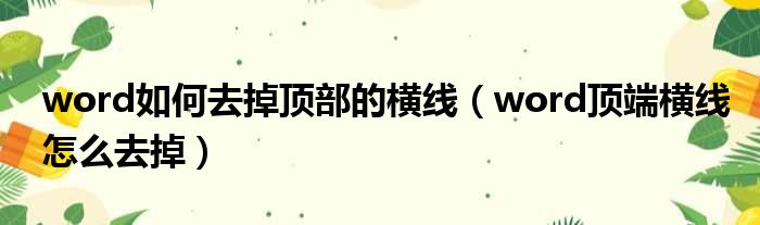 导读 大家好,今天小六子来为大家解答以下的问题,关于word如何去掉顶部的横线,word顶端横线怎么去掉这个很多人还不知道,现在让我们一起来看看