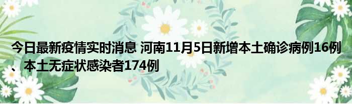 今日最新疫情实时消息 河南11月5日新增本土确诊病例16例、本土无症状感染者174例