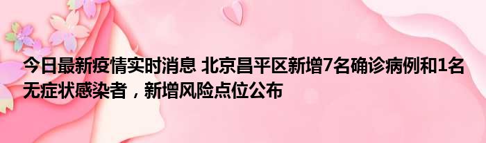 今日最新疫情实时消息 北京昌平区新增7名确诊病例和1名无症状感染者,新增风险点位公布