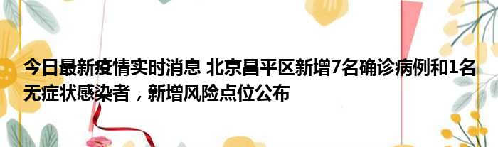 今日最新疫情实时消息 北京昌平区新增7名确诊病例和1名无症状感染者,新增风险点位公布