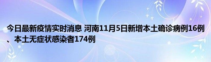 今日最新疫情实时消息 河南11月5日新增本土确诊病例16例、本土无症状感染者174例