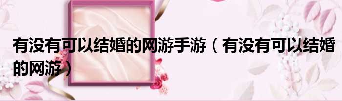 有没有可以结婚的网游手游(有没有可以结婚的网游)