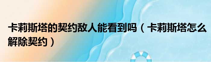 卡莉斯塔的契约敌人能看到吗(卡莉斯塔怎么解除契约)
