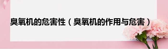 大家好,今天小六子来为大家解答以下的问题,关于臭氧机的危害性,臭氧机的作用与危害这个很多人还不知道,现在让我们一起来看看吧!