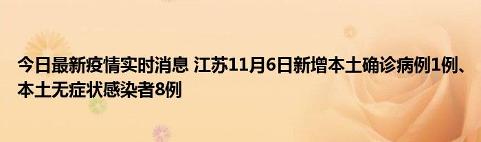 江苏卫健委通报,11月6日0-24时,江苏新增本土确诊病例1例(南京市报告,为集中隔离点发现,在定点医院隔离治疗)新增本土无症状感染者8