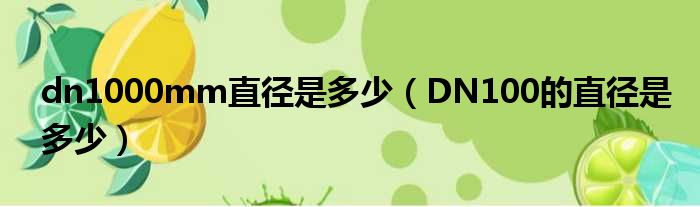 导读 大家好,今天小六子来为大家解答以下的问题,关于dn1000mm直径是多少,DN100的直径是多少这个很多人还不知道,现在让我们一起来看看吧!1、d