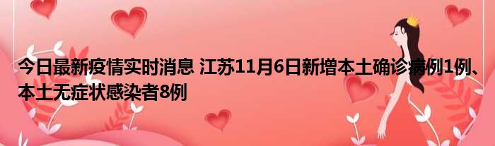 江苏卫健委通报,11月6日0-24时,江苏新增本土确诊病例1例(南京市报告,为集中隔离点发现,在定点医院隔离治疗)新增本土无症状感染者8