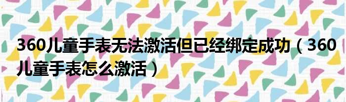 360儿童手表无法激活但已经绑定成功(360儿童手表怎么激活)