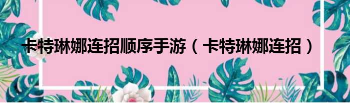 卡特琳娜连招顺序手游(卡特琳娜连招)