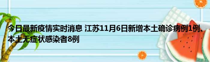 江苏卫健委通报,11月6日0-24时,江苏新增本土确诊病例1例(南京市报告,为集中隔离点发现,在定点医院隔离治疗)新增本土无症状感染者8