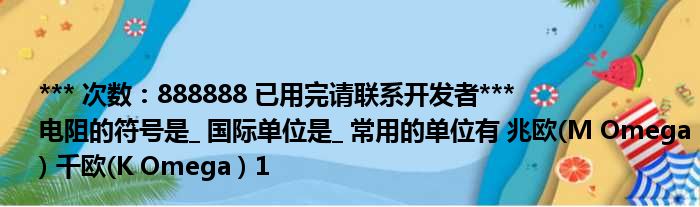 *** 次数:888888 已用完请联系开发者*** 电阻的符号是_ 国际单位是_ 常用的单位有 兆欧(M Omega ) 千欧(K Omega ) 1