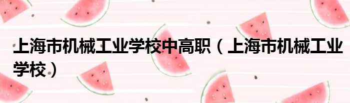 导读 大家好,今天小六子来为大家解答以下的问题,关于上海市机械工业学校中高职,上海市机械工业学校这个很多人还不知道,现在让我们一起来看看