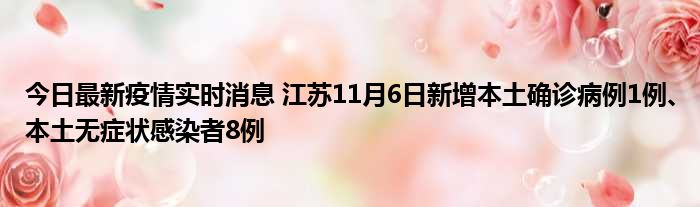 江苏卫健委通报,11月6日0-24时,江苏新增本土确诊病例1例(南京市报告,为集中隔离点发现,在定点医院隔离治疗)新增本土无症状感染者8