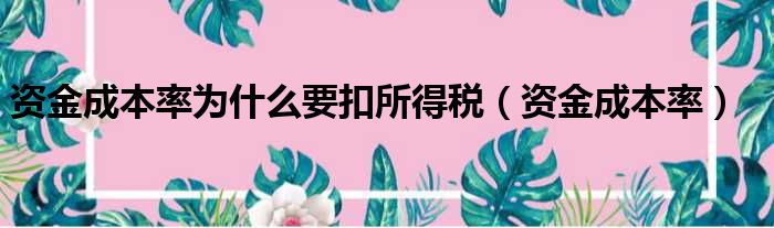 导读 大家好,今天小六子来为大家解答以下的问题,关于资金成本率为什么要扣所得税,资金成本率这个很多人还不知道,现在让我们一起来看看吧!1、