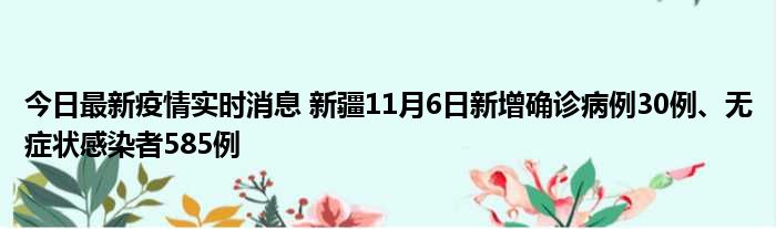 据新疆卫健委通报,11月6日0时至24时,新疆维吾尔自治区新增确诊病例30例,新增无症状感染者585例,新增确诊病例治愈出院2例,新增无症状