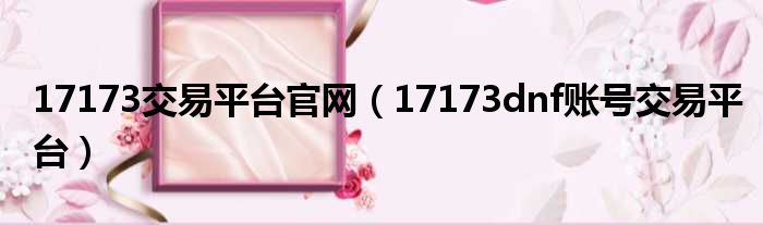 导读 大家好,今天小六子来为大家解答以下的问题,关于17173交易平台官网,17173dnf账号交易平台这个很多人还不知道,现在让我们一起来看看吧!1