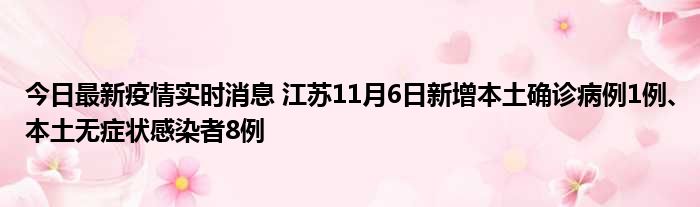 江苏卫健委通报,11月6日0-24时,江苏新增本土确诊病例1例(南京市报告,为集中隔离点发现,在定点医院隔离治疗)新增本土无症状感染者8