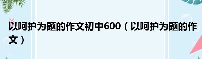 导读 大家好,今天小六子来为大家解答以下的问题,关于以呵护为题的作文初中600,以呵护为题的作文这个很多人还不知道,现在让我们一起来看看吧!