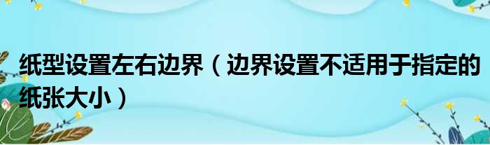 导读 大家好,今天小六子来为大家解答以下的问题,关于纸型设置左右边界,边界设置不适用于指定的纸张大小这个很多人还不知道,现在让我们一起来