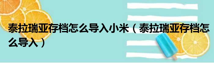 泰拉瑞亚存档怎么导入小米(泰拉瑞亚存档怎么导入)