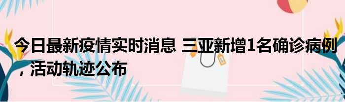今日最新疫情实时消息 三亚新增1名确诊病例,活动轨迹公布