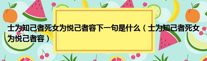 士为知己者死女为悦己者容下一句是什么(士为知己者死女为悦己者容)